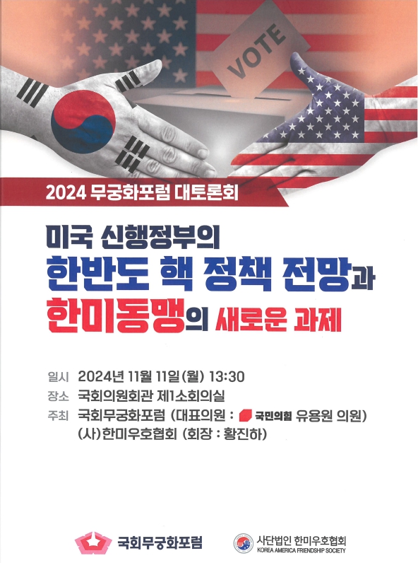 2024년 11월 11일 한미우호협회와 국회 유용원 의원실에서 공동 주최한 한미동맹 세미나